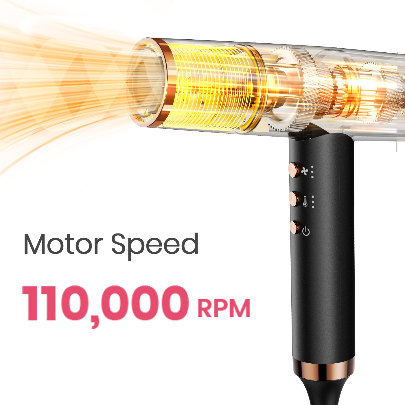 Powerful 110,000 RPM motor for ultra-fast drying. Save time and achieve sleek, dry hair in 5 minutes.