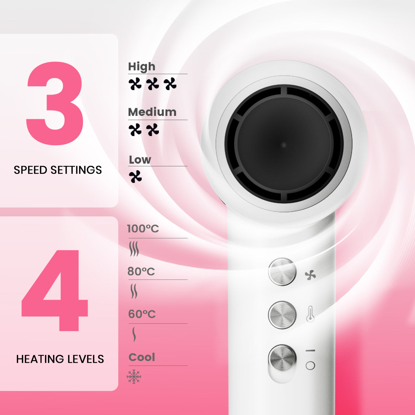Experience salon-quality drying in minutes with a 110,000 RPM high-speed brushless motor and ultra-light aluminum blades, delivering powerful 60 m/s airflow.